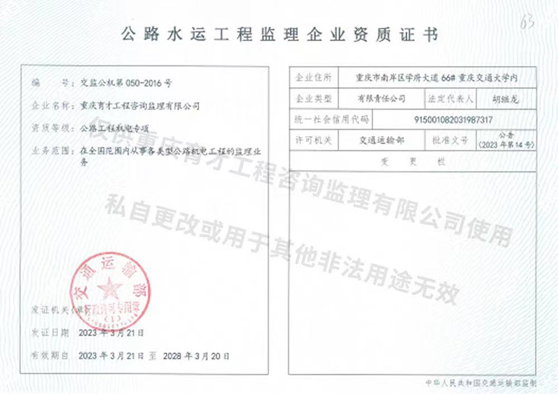 交通部--機電專項資質(zhì)證書